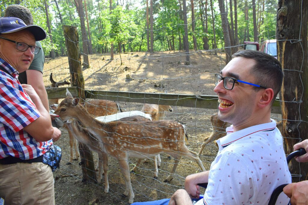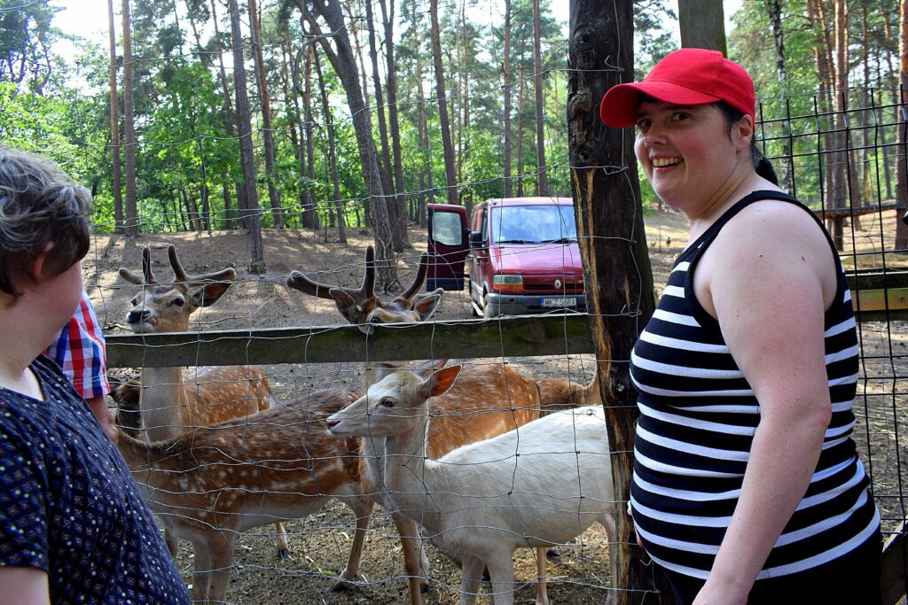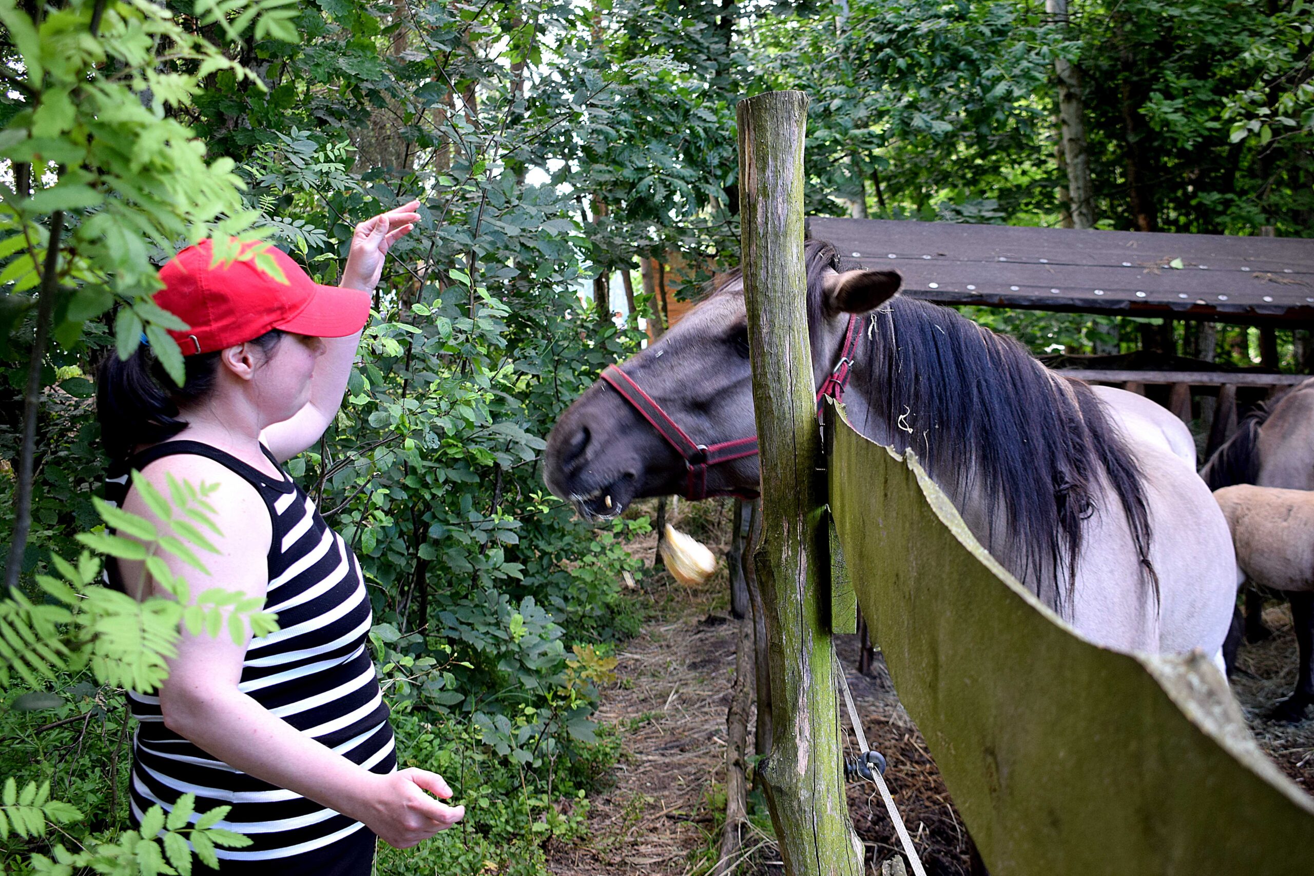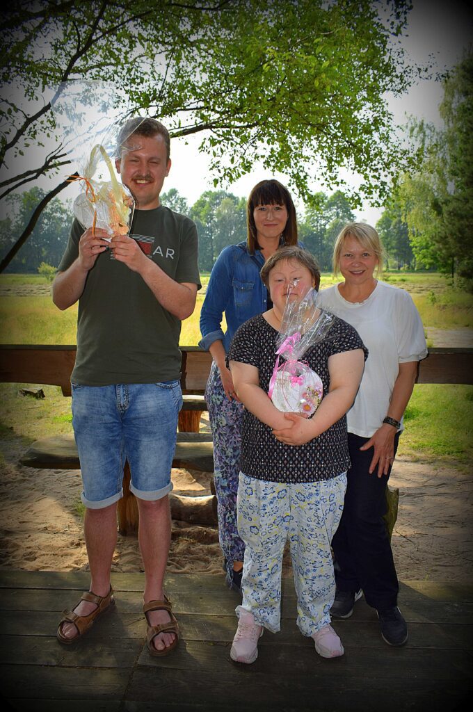 Można tu pokarmić konie, krowy, daniele… ale też smacznie zjeść, my zajadaliśmy się pyszną, swojską kiełbaską z grilla. Po jedzeniu, zwiedzaniu przyszedł czas na drobne prezenty, które Uczestnicy przygotowali w swoich pracowniach dla swoich Rodzin. Miły, ciepły dzień udowodnił nam, że niedaleko własnego domu – można przeżyć coś nowego, doświadczyć kontaktu ze zwierzętami i przyrodą.