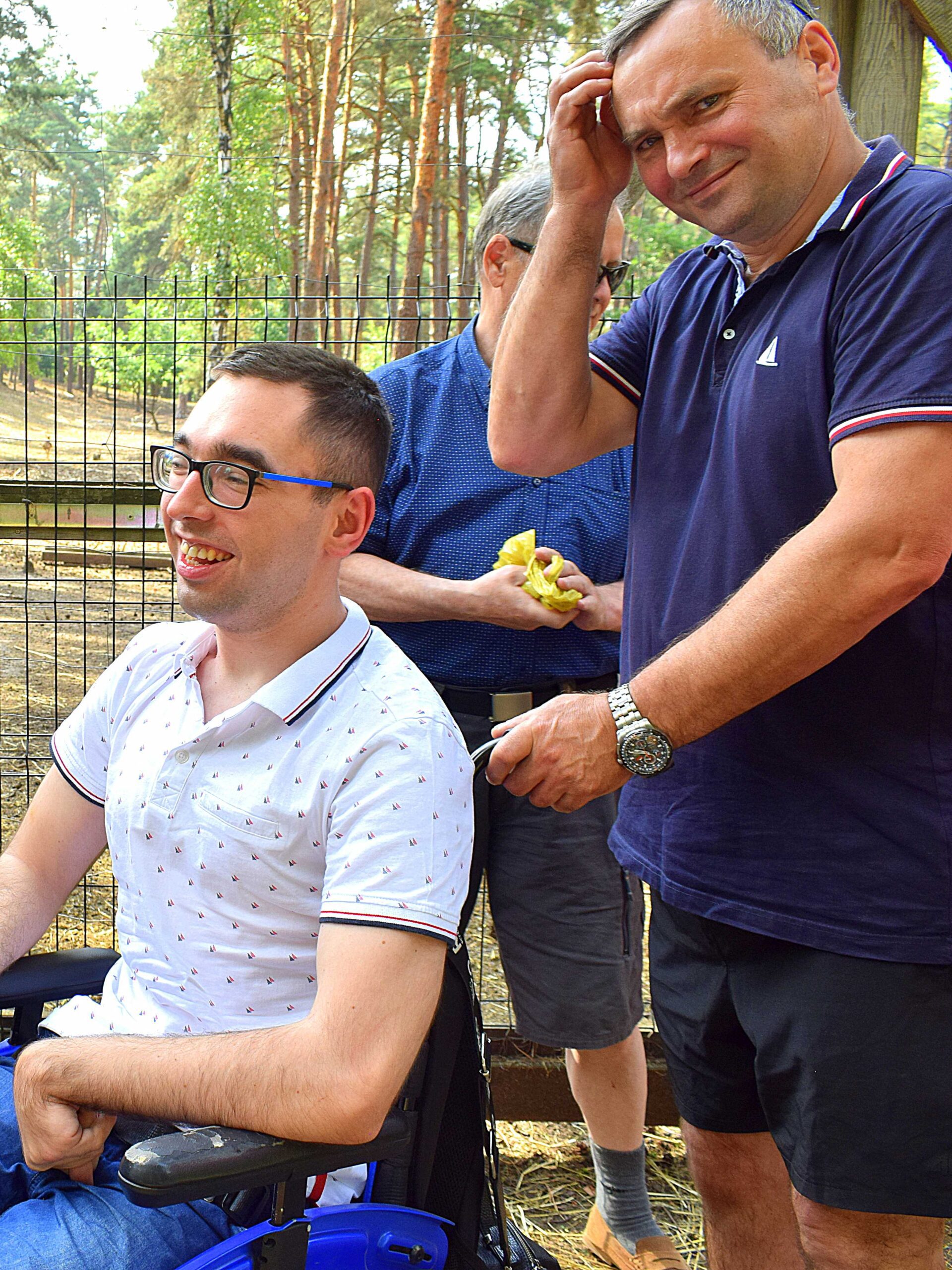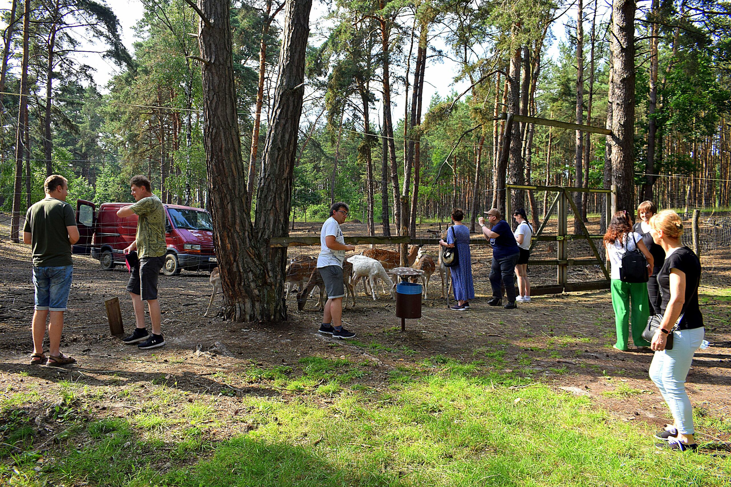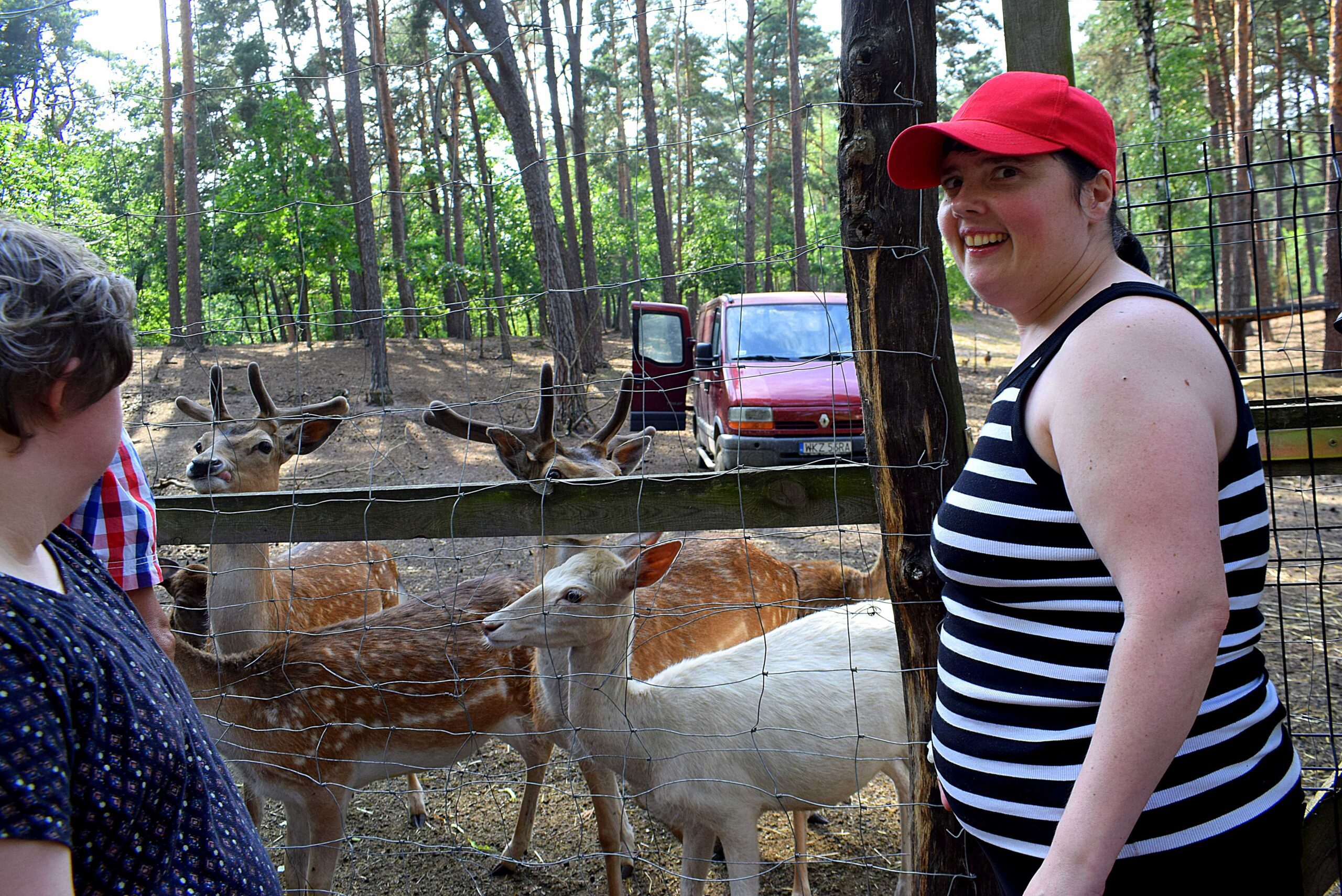 Można tu pokarmić konie, krowy, daniele… ale też smacznie zjeść, my zajadaliśmy się pyszną, swojską kiełbaską z grilla. Po jedzeniu, zwiedzaniu przyszedł czas na drobne prezenty, które Uczestnicy przygotowali w swoich pracowniach dla swoich Rodzin. Miły, ciepły dzień udowodnił nam, że niedaleko własnego domu – można przeżyć coś nowego, doświadczyć kontaktu ze zwierzętami i przyrodą.