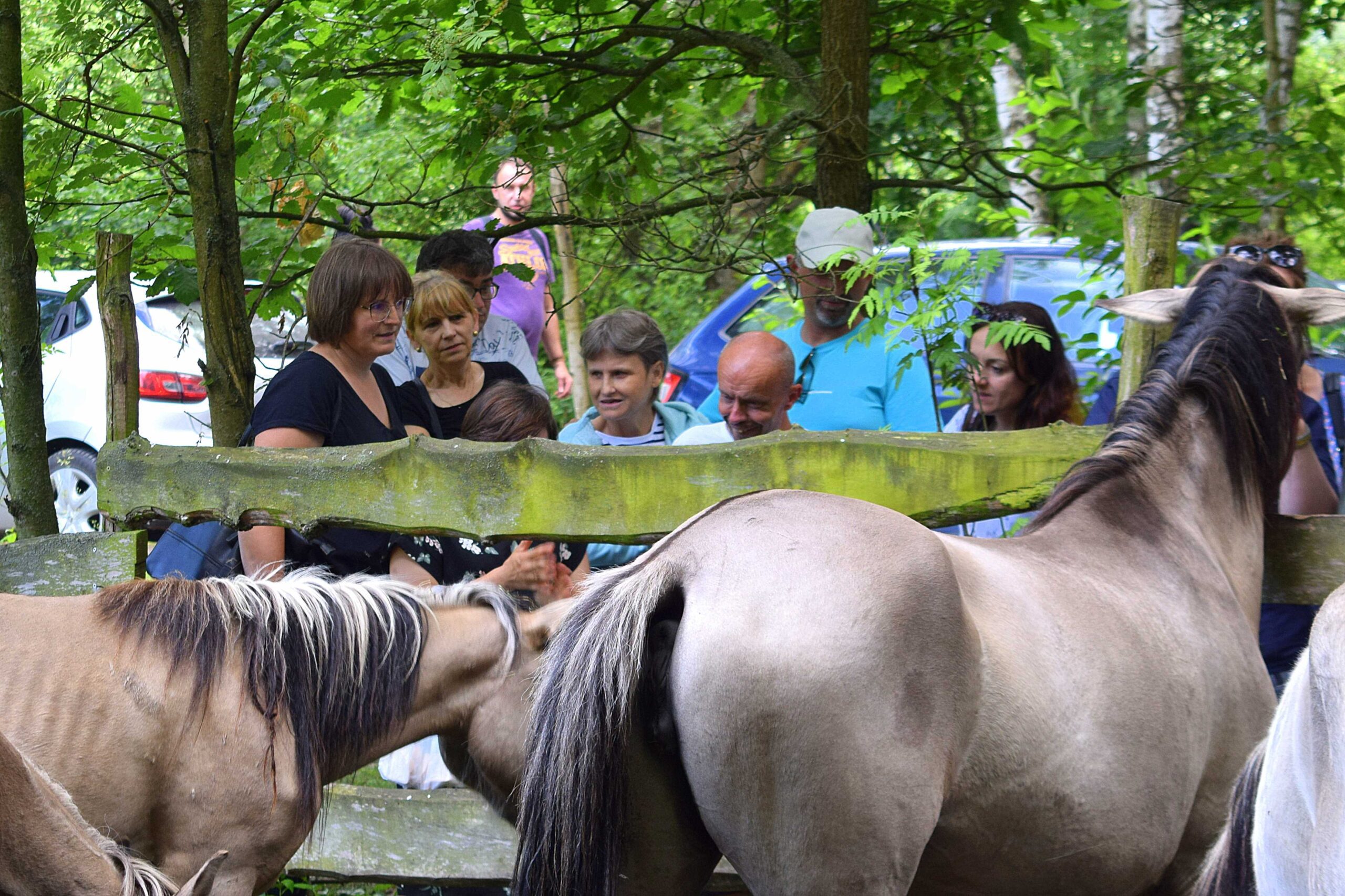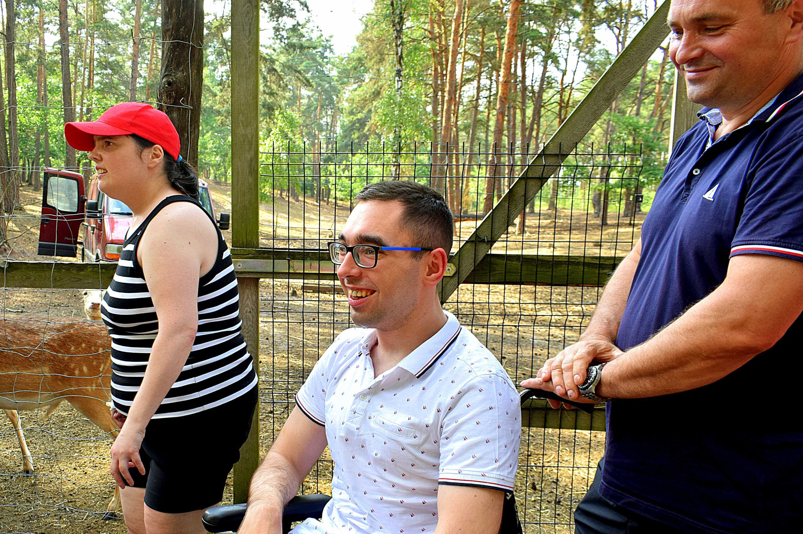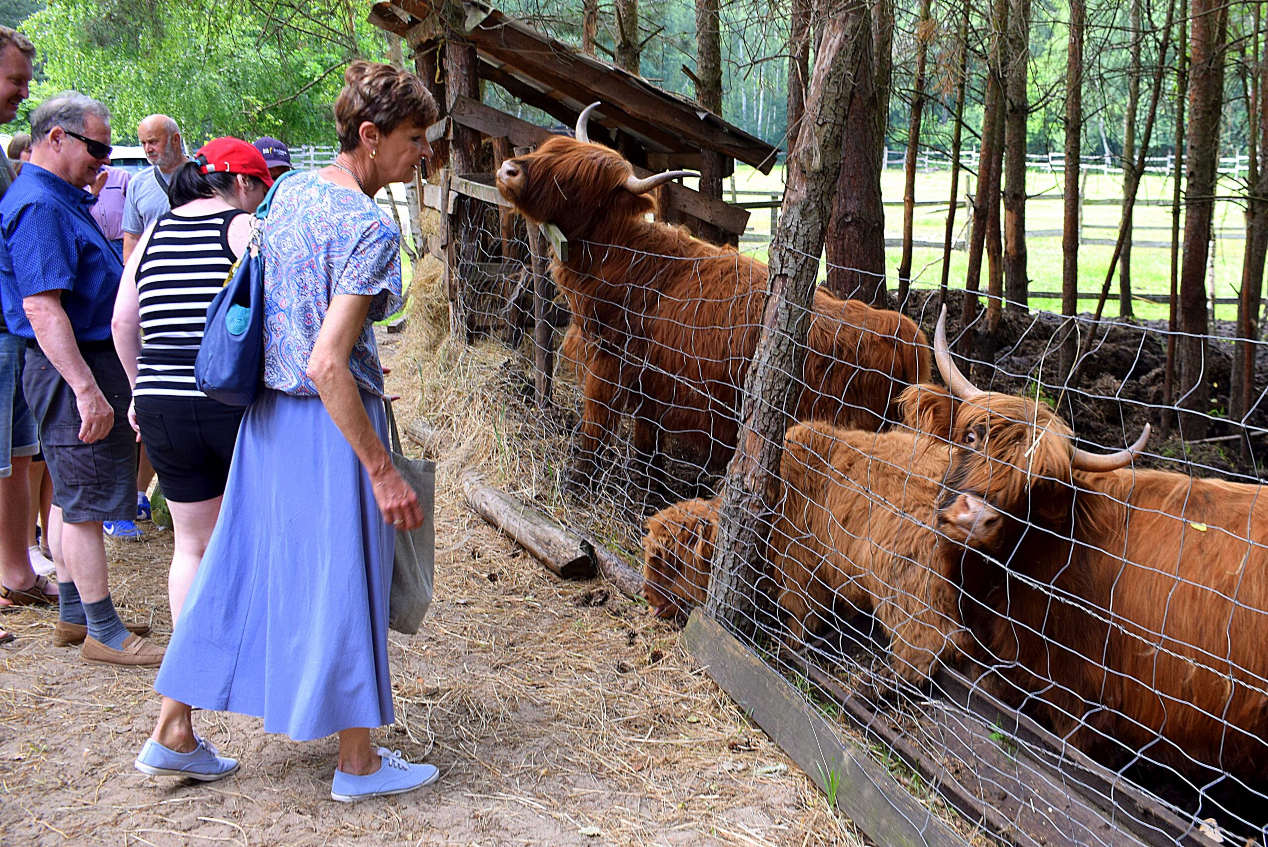 Można tu pokarmić konie, krowy, daniele… ale też smacznie zjeść, my zajadaliśmy się pyszną, swojską kiełbaską z grilla. Po jedzeniu, zwiedzaniu przyszedł czas na drobne prezenty, które Uczestnicy przygotowali w swoich pracowniach dla swoich Rodzin. Miły, ciepły dzień udowodnił nam, że niedaleko własnego domu – można przeżyć coś nowego, doświadczyć kontaktu ze zwierzętami i przyrodą.